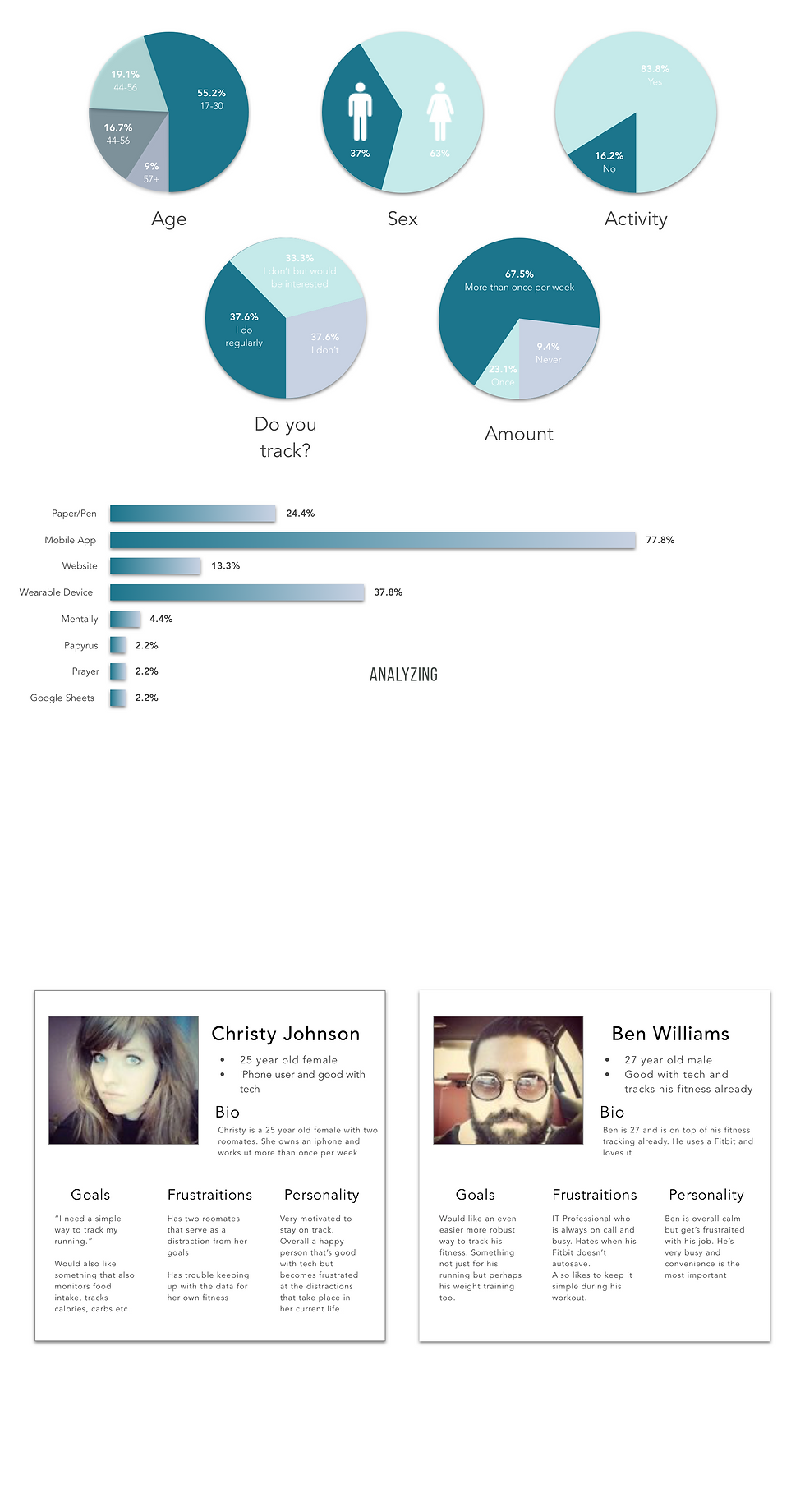 I also needed to figure out who my users were so I could interview the correct folks. To do this, I first sent out a screener using Google Forms to various social media platforms to gauge who works out and who doesn't. From there, I then sent out a survey to gauge why they do what they do and how they do it. To the right you can see the format that I used to get in touch with the correct user-base.